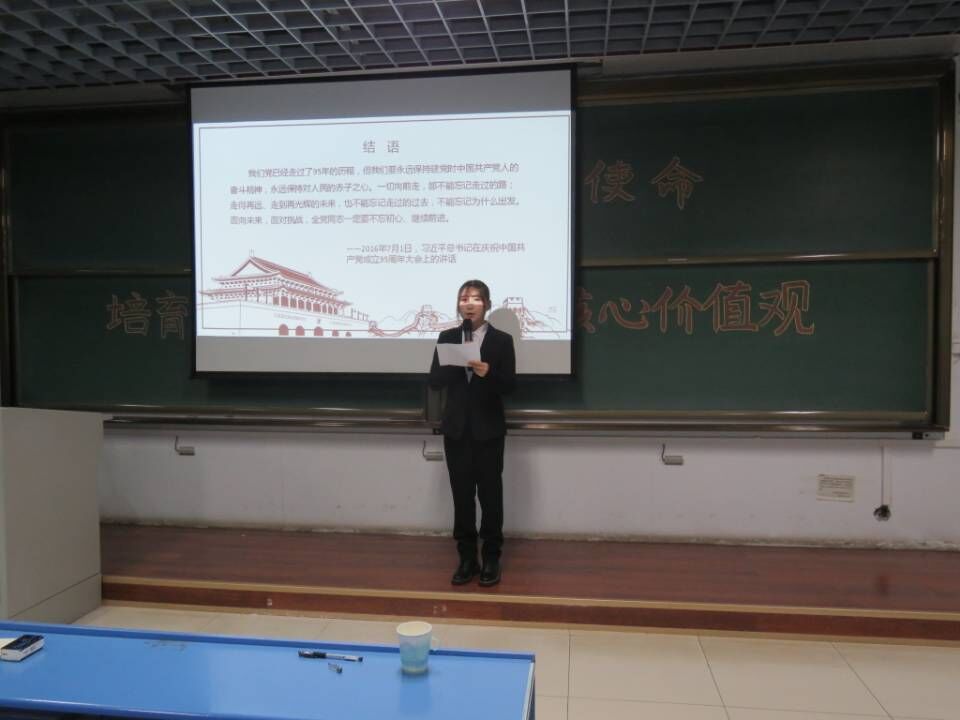 本次党课由常青院长担任主讲人,常青院长向在场人员深刻诠释了本次党课主题——落实主题教育总要求即“守初心、担使命、找差距、抓落实”。培育和践行社会主义核心价值观即要求各位大力传承和延续中华民族思想精髓、精神基因、文化血脉,加强各位先进党员对中国特色社会主义的认识,从思想理论、实践运动、社会制度层面进一步发展到价值理念层面。常青院长还提出在座的各位同学都要牢记共产党人的初心和使命,在走好人生之路的同时结合自身理想与国家理想,为国家贡献自己的力量。